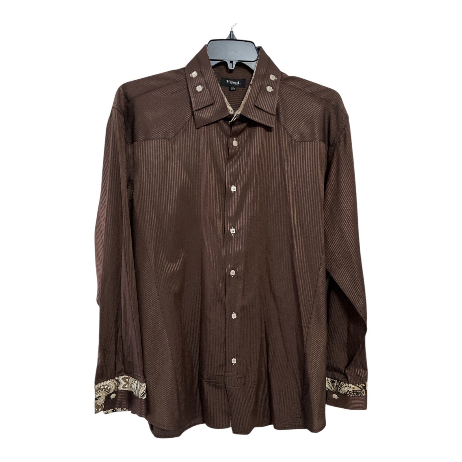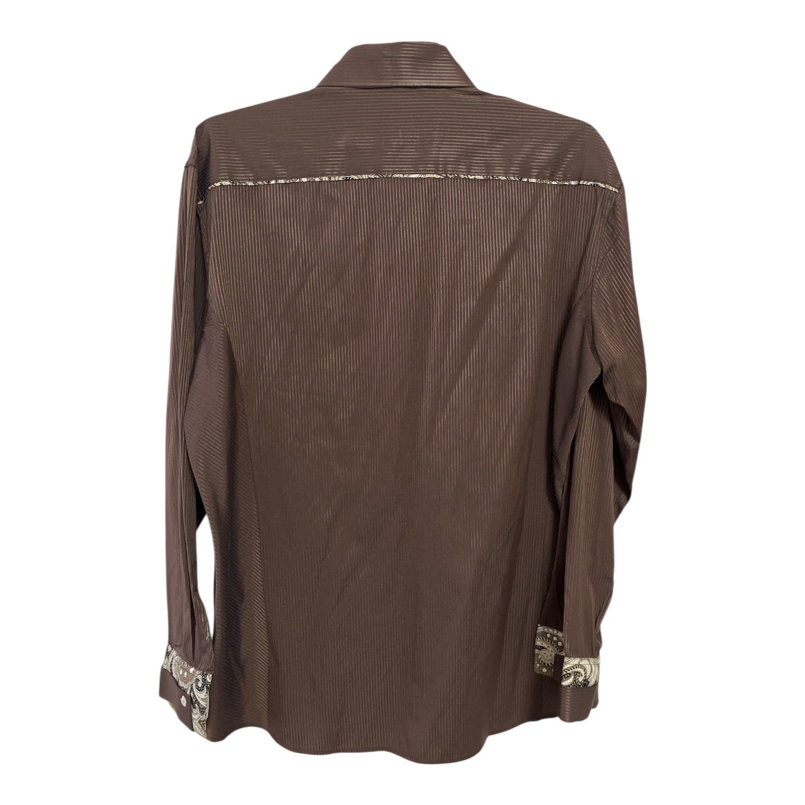 Vizioni Men’s XXXL Brown Textured Striped Dress Shirt – Paisley Trim – Square Buttons