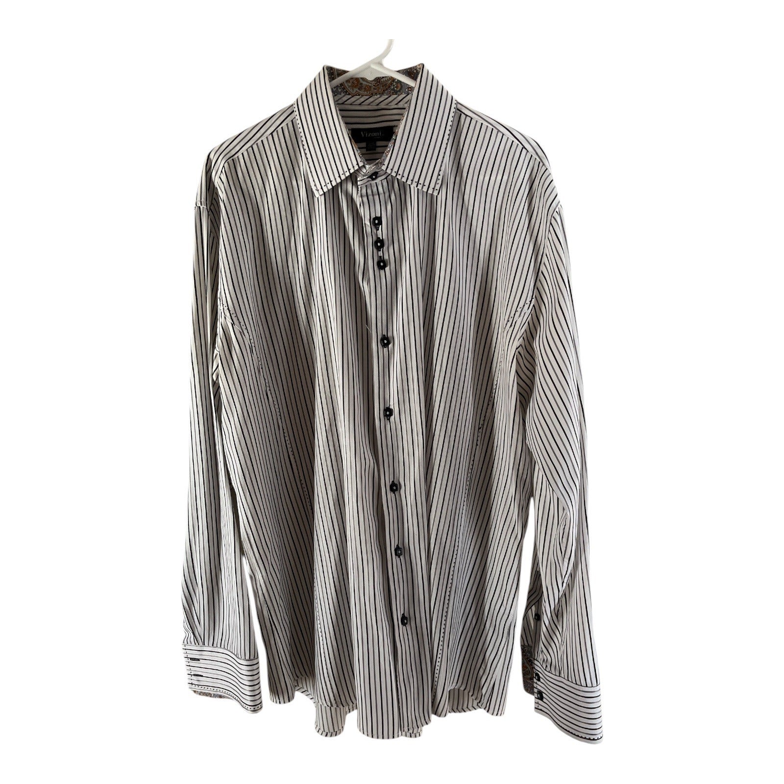 Vizoni Uomo Men’s XXXL Dress Shirt – Black & White Stripe with Paisley Trim – Modern Fit 48x32