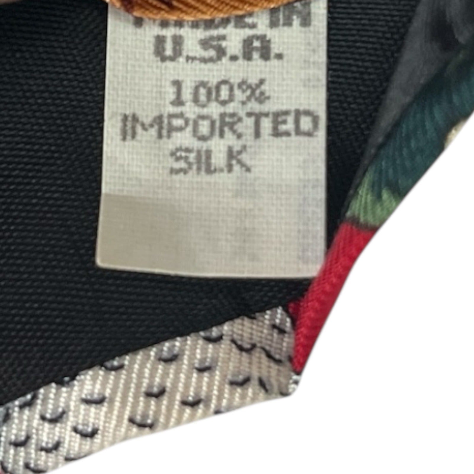 This vintage 1990s Spencer & Lowe men’s tie features a bold golf-themed design with clubs, golf bags, balls, and trophy motifs against a rich red background. Made of 100% imported silk and crafted in the USA, it’s a great choice for golf lovers, collectors, or anyone looking to add a statement accessory to their wardrobe.