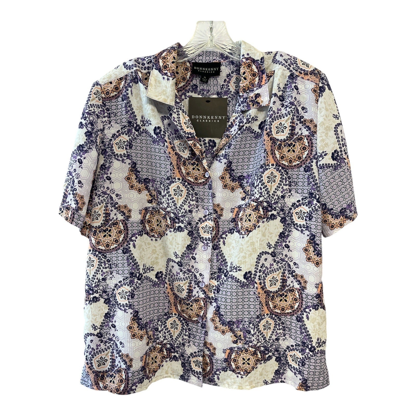 Vtg Donnkenny Classics Women’s Blouse XL – 90s Y2K Button Down Short Sleeve with Shoulder Pads
