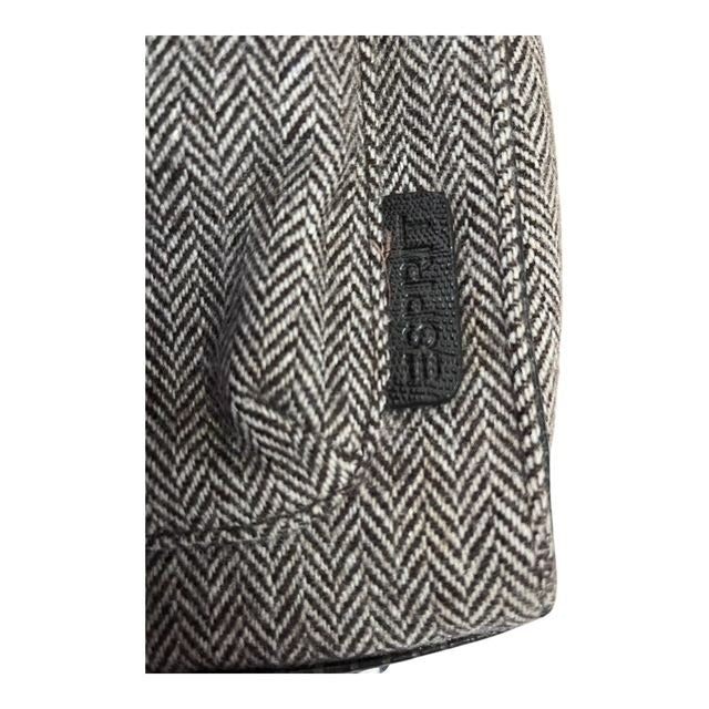 VTG Esprit Brown & Beige Herringbone Tote Bag – Faux Leather Trim – Classic Shoulder Handbag
