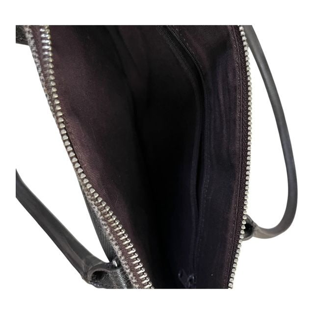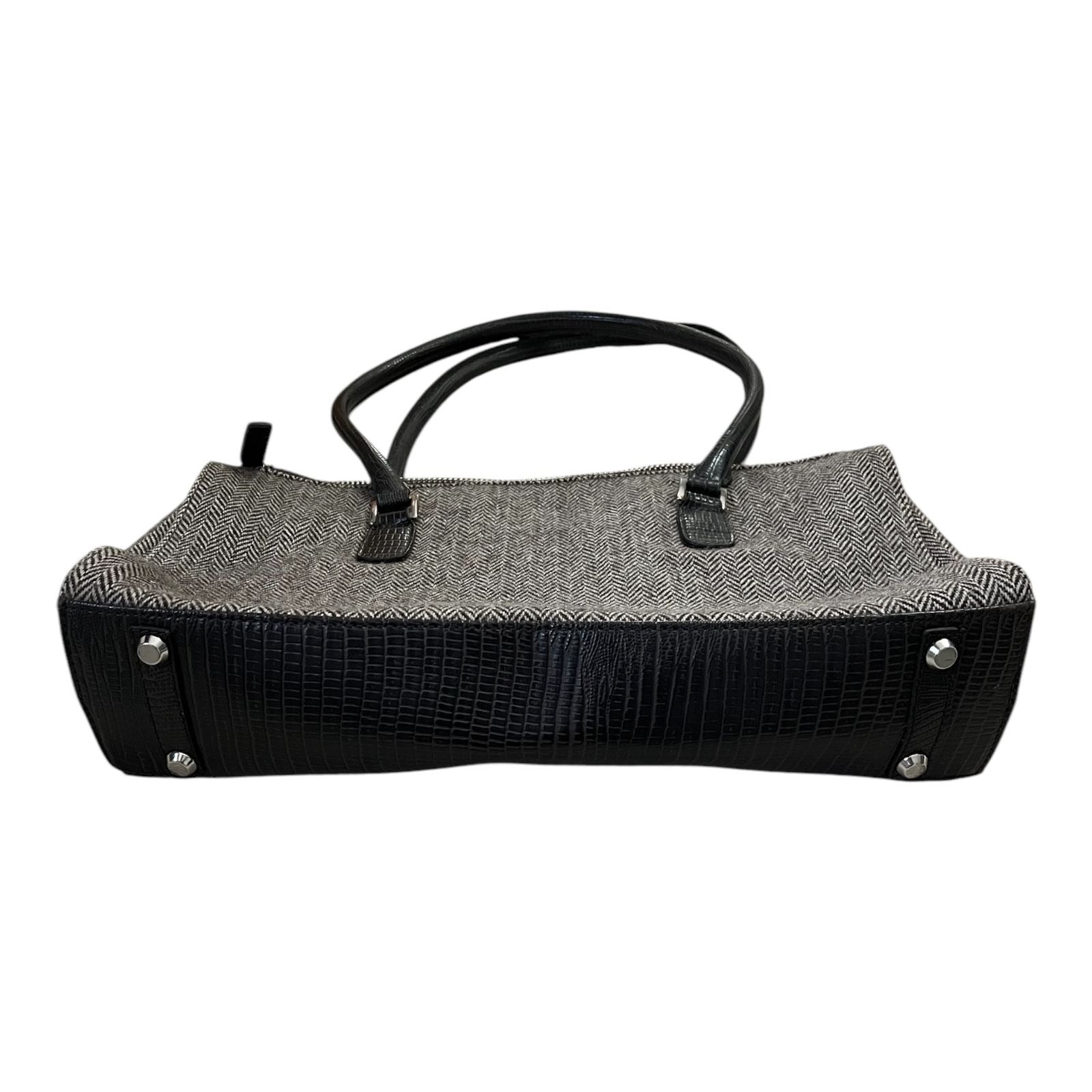 Material: Herringbone fabric body with faux leather trim (croc-embossed look)
