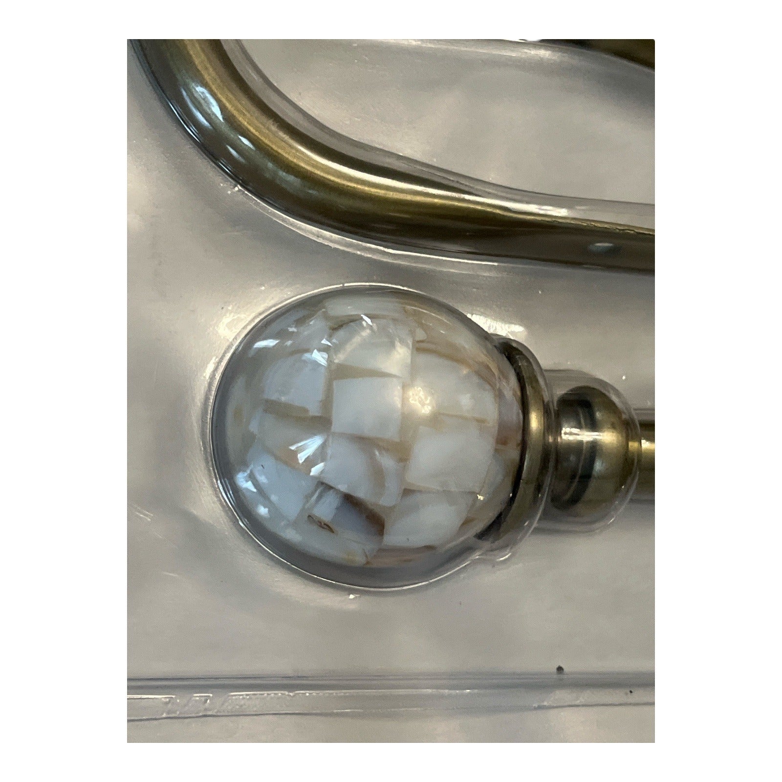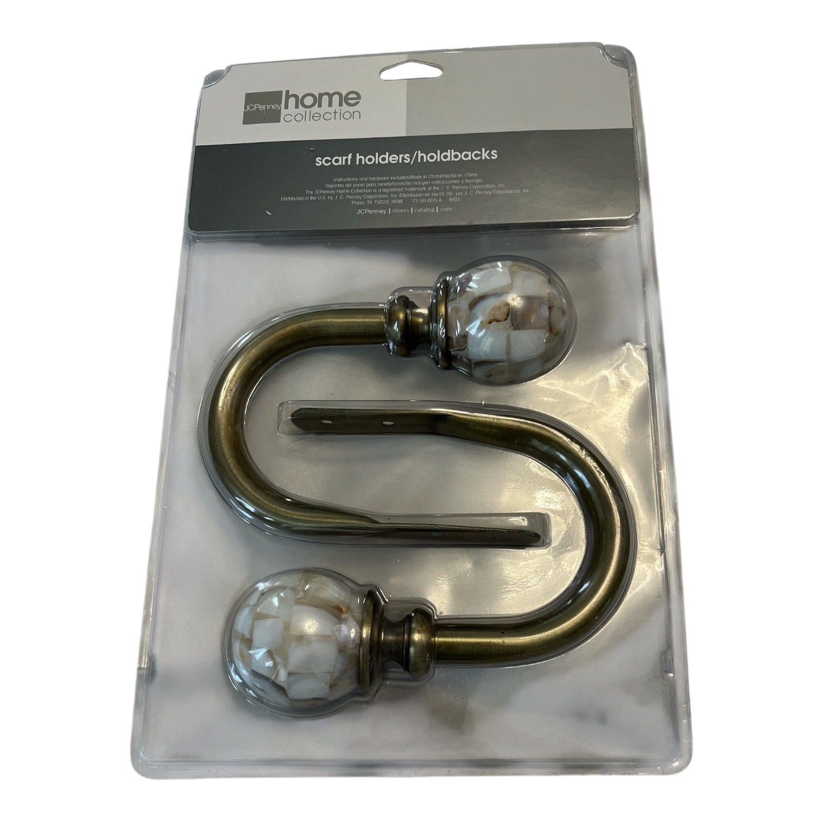 Add a refined vintage touch to your window treatments with this elegant set of scarf holders/holdbacks from the JCPenney Home Collection. Featuring a warm antique brass finish and pearlescent mosaic-style glass finials, these timeless accents blend well with both traditional and eclectic décor.