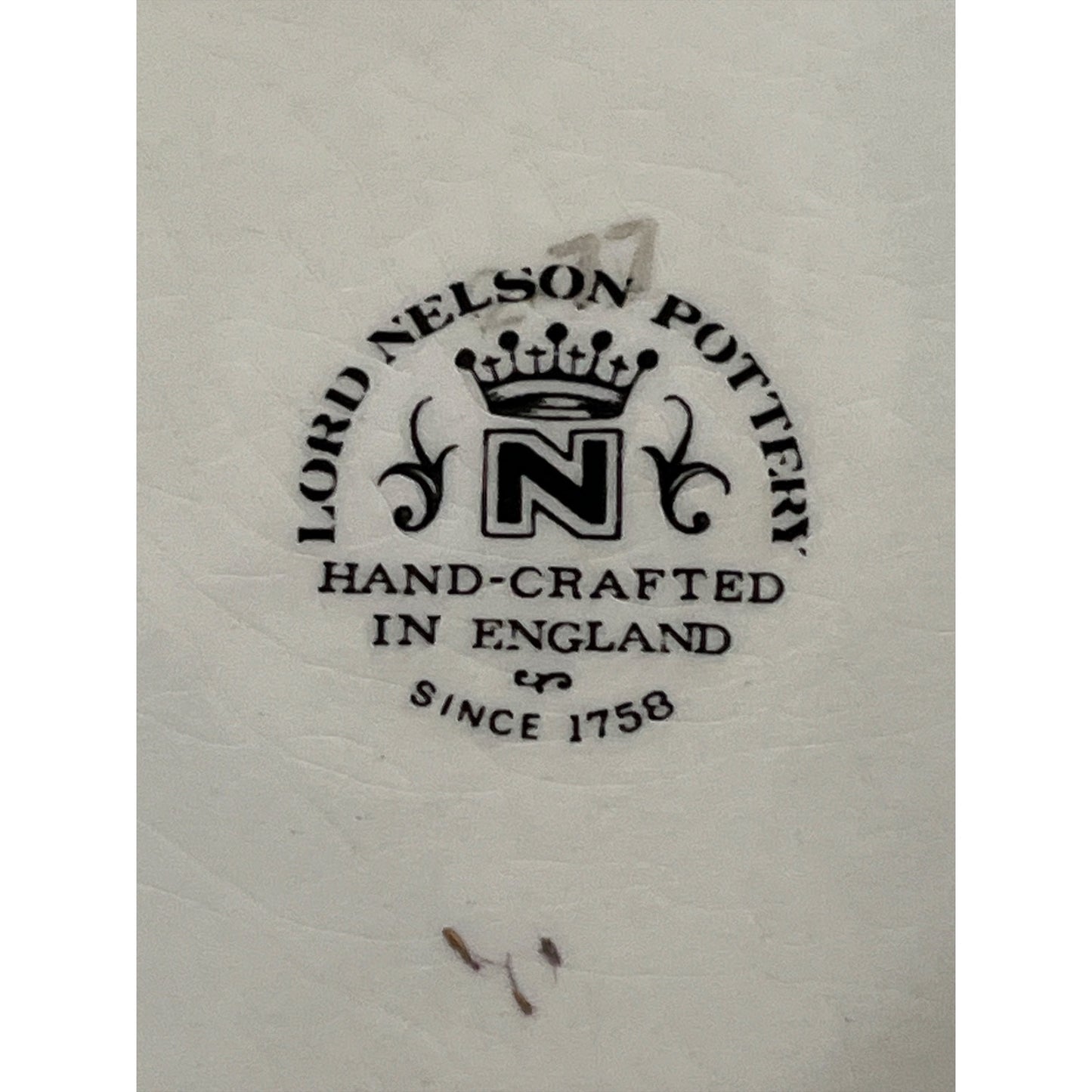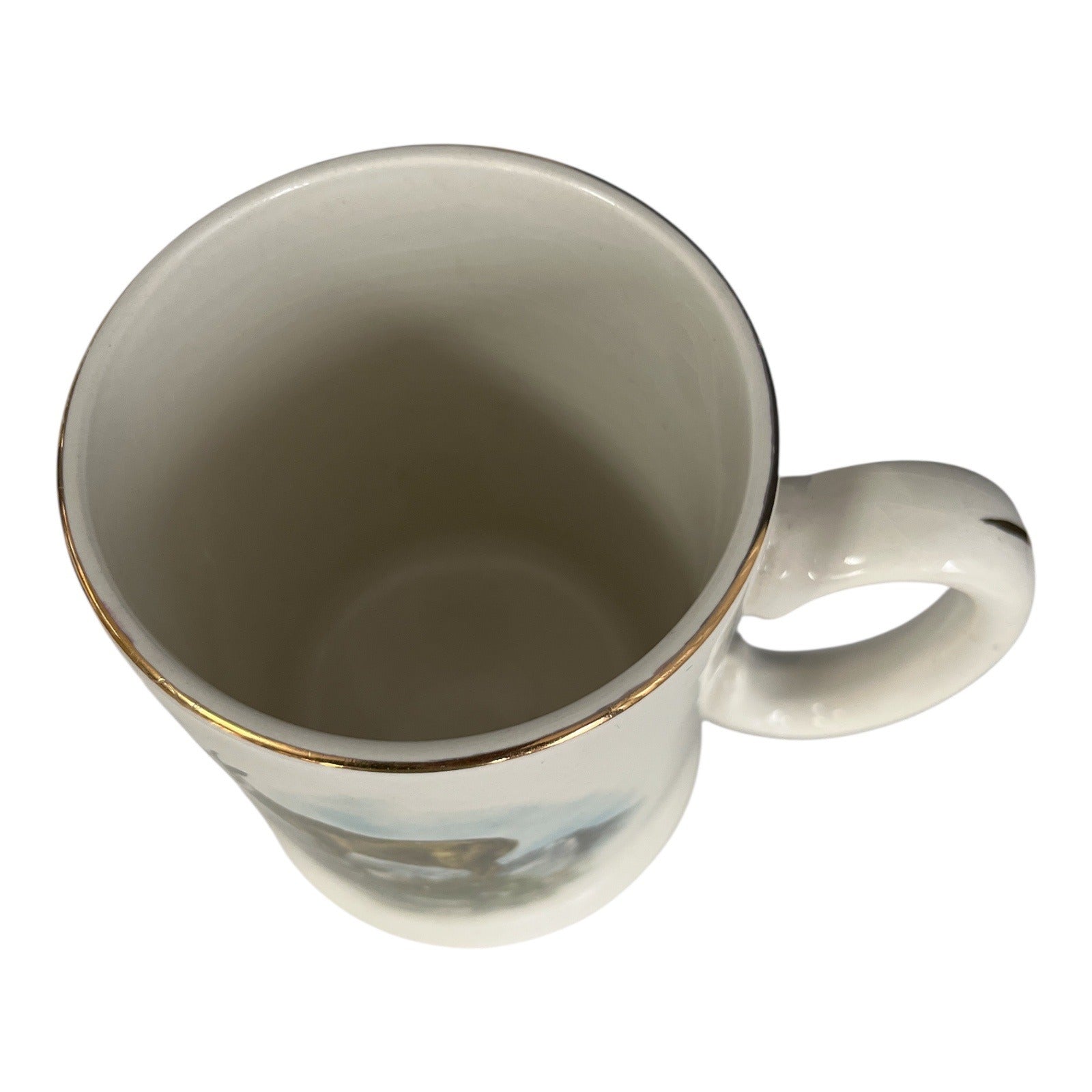 This vintage Lord Nelson Pottery mug features a hand-painted style design of a mountain goat standing among rocky peaks, accented with a fine gold rim. Made in England and marked with the classic Lord Nelson Pottery hallmark, this piece reflects the craftsmanship of a brand with roots dating back to 1758. A charming addition for collectors of English pottery, wildlife art, or rustic cabin décor.