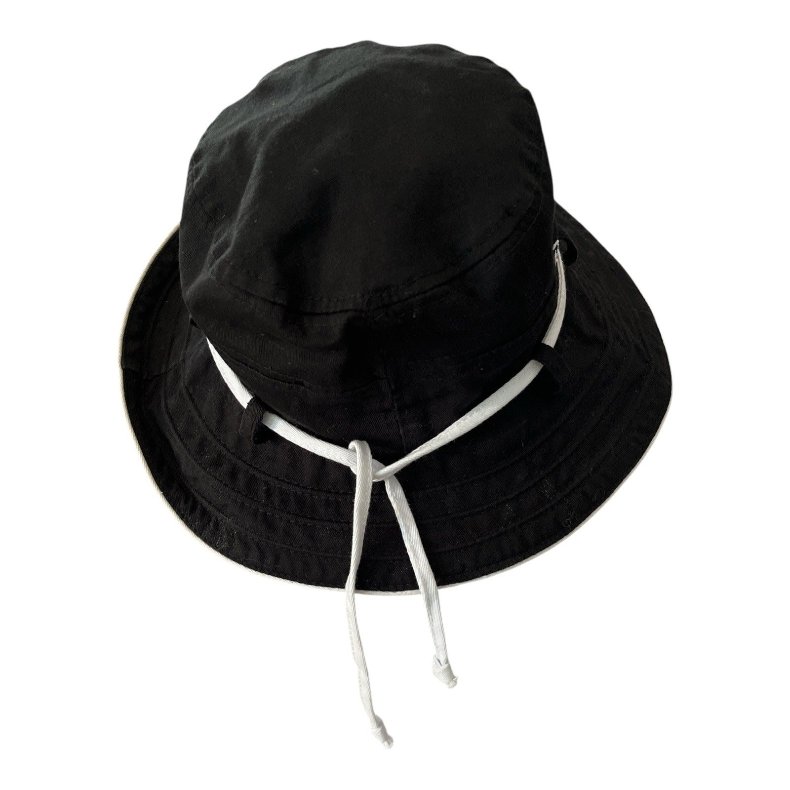 This vintage pair of Panama Jack hats is perfect for warm-weather adventures. The khaki safari hat features breathable nylon mesh sides and a structured brim, while the black bucket hat includes a white accent cord and relaxed design. Both are size Medium and crafted for comfort and shade on sunny days.