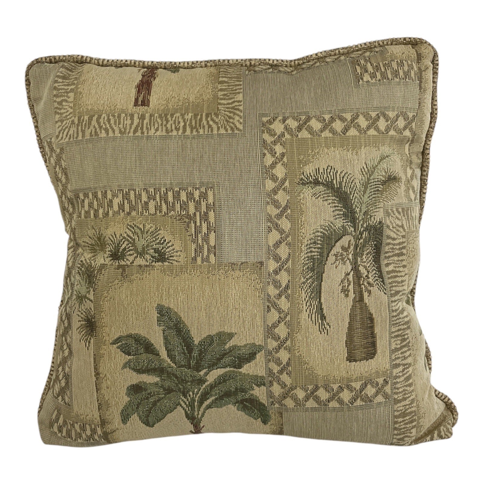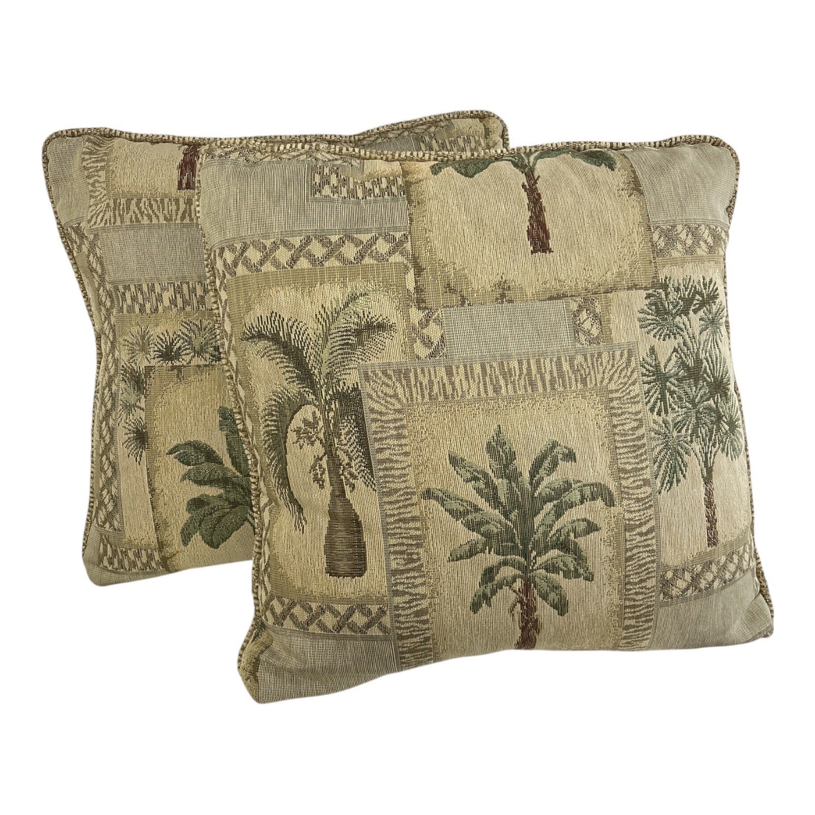 Vtg Set of 2 Tapestry Palm Tree Decorative Pillow Covers with Inserts – 17”
