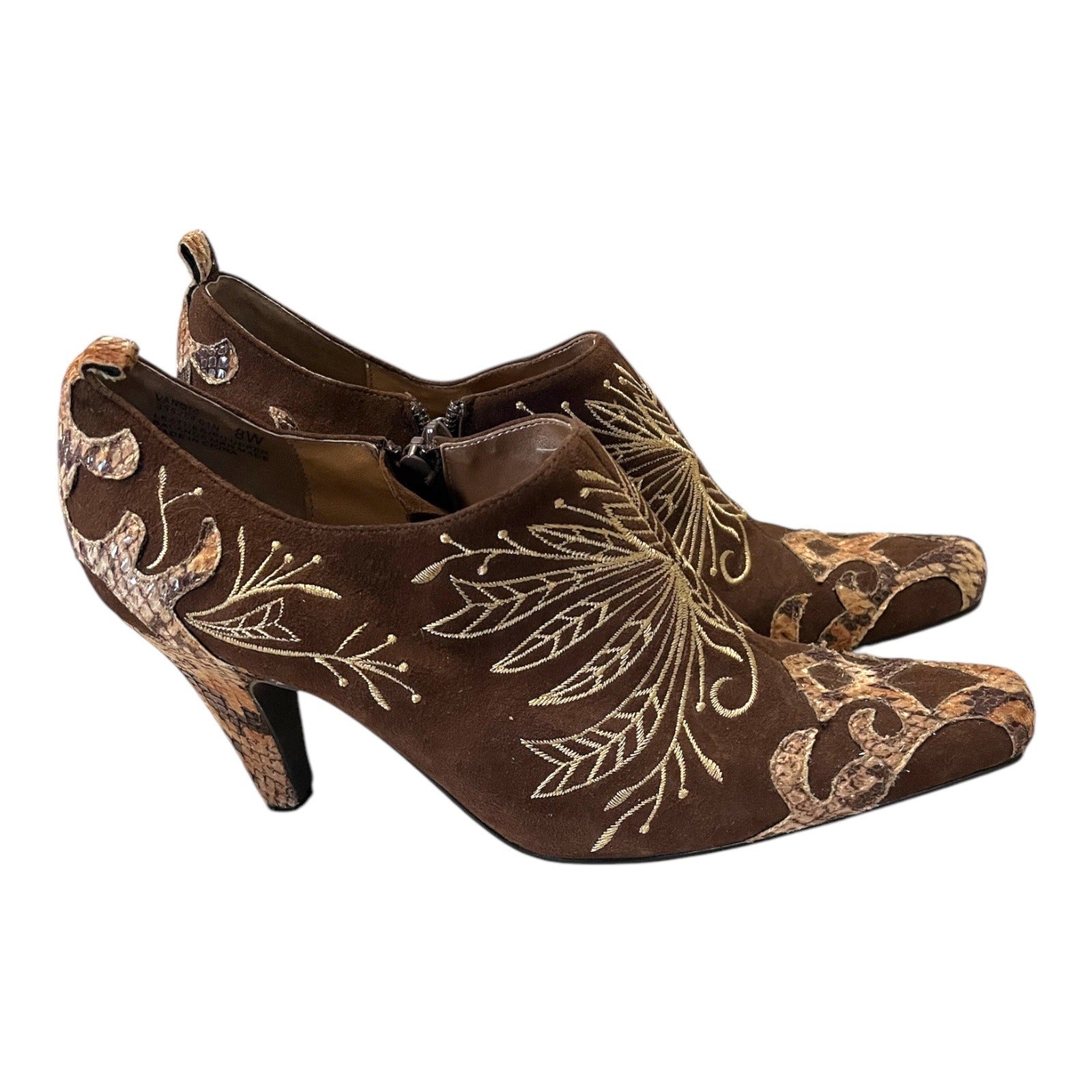 Wallace & Clark Vangie Women’s Brown Snakeskin Embroidered Heels Size 8W