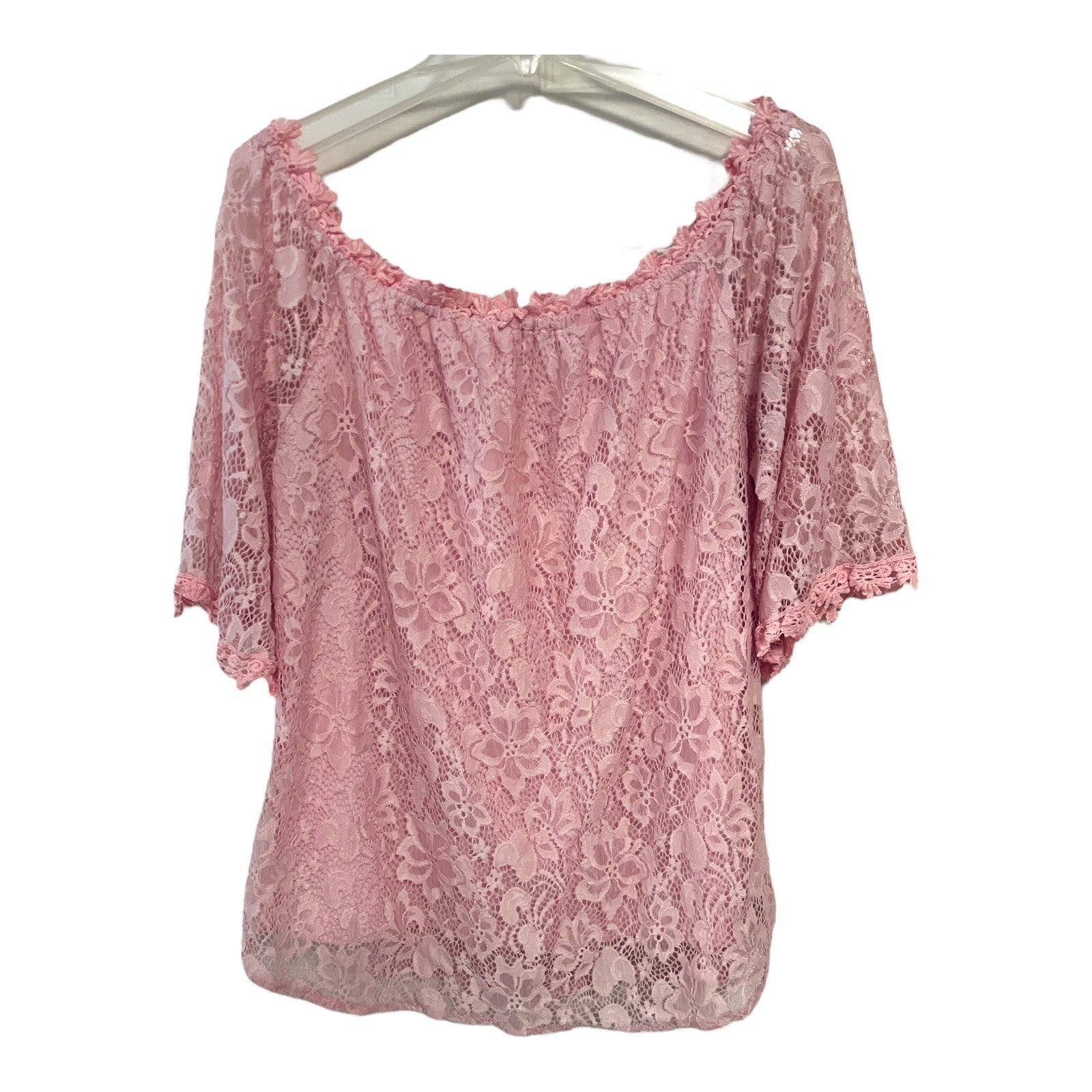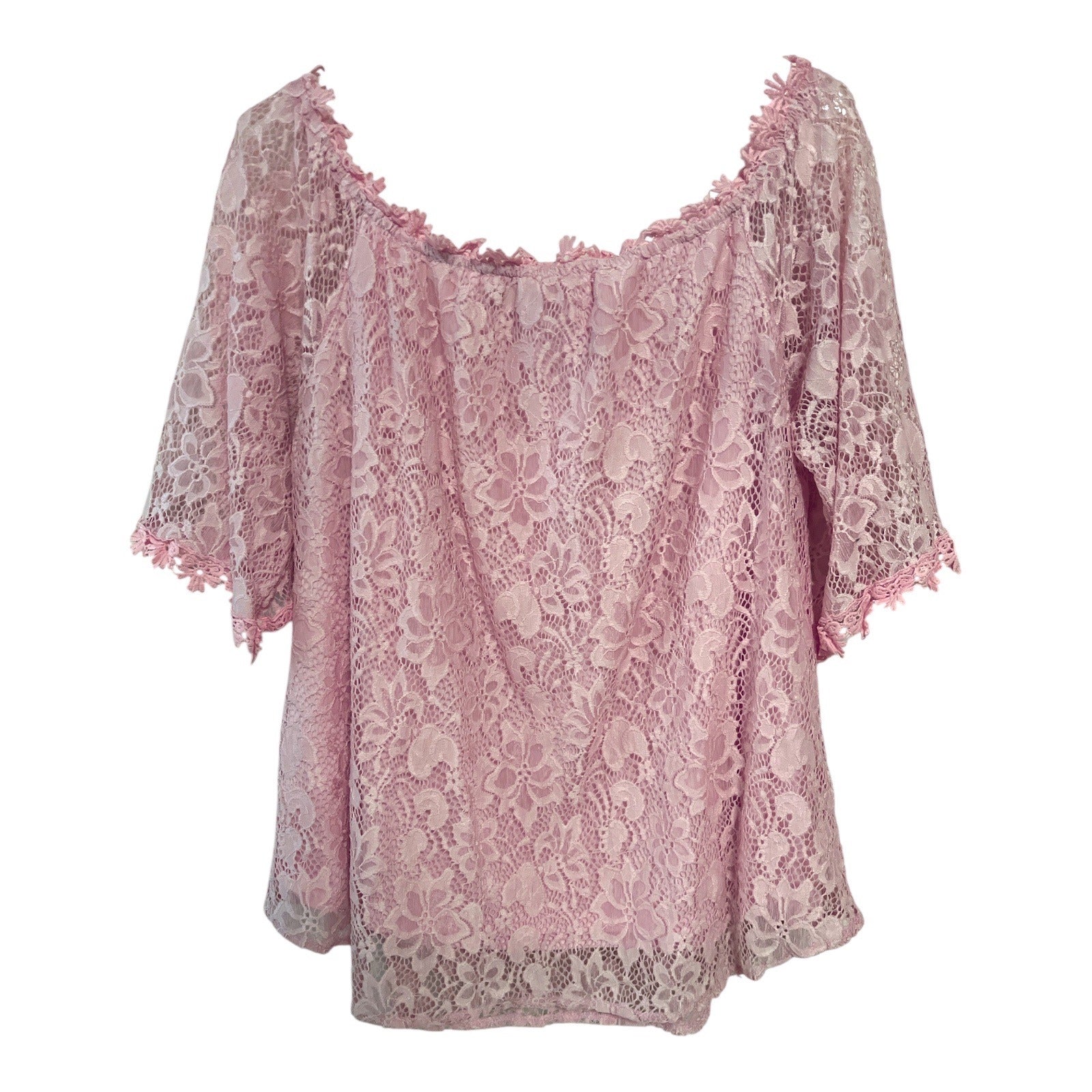 Women’s Pink Floral Lace Top – Off-Shoulder Style – Miholl XXL